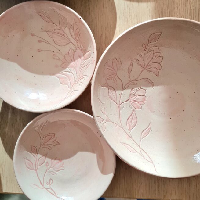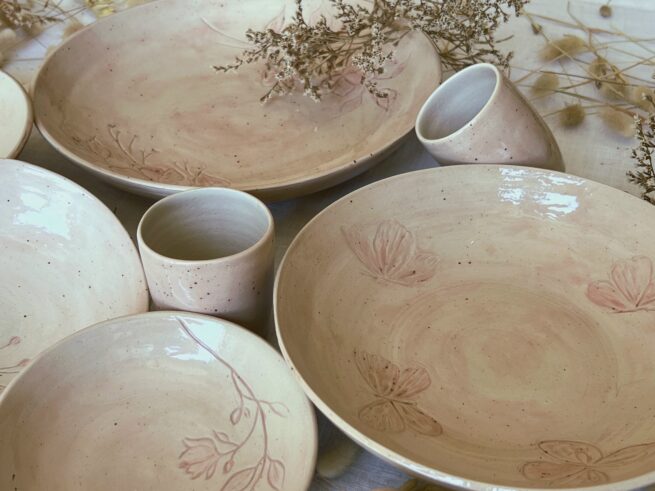 Plats et saladiers rouges en grès