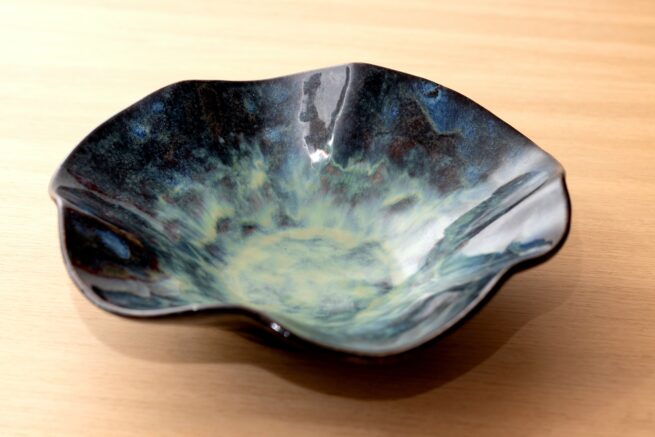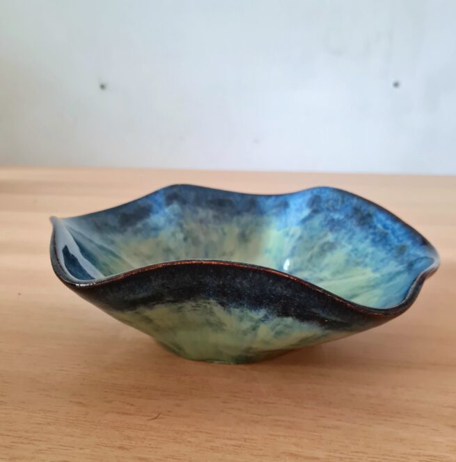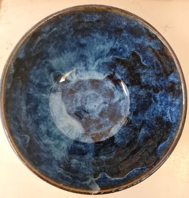Saladier bleu et metallique en grès
