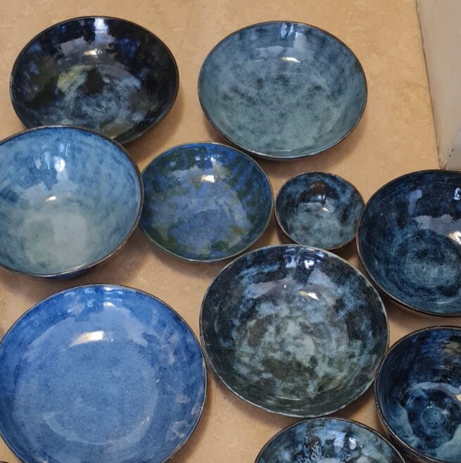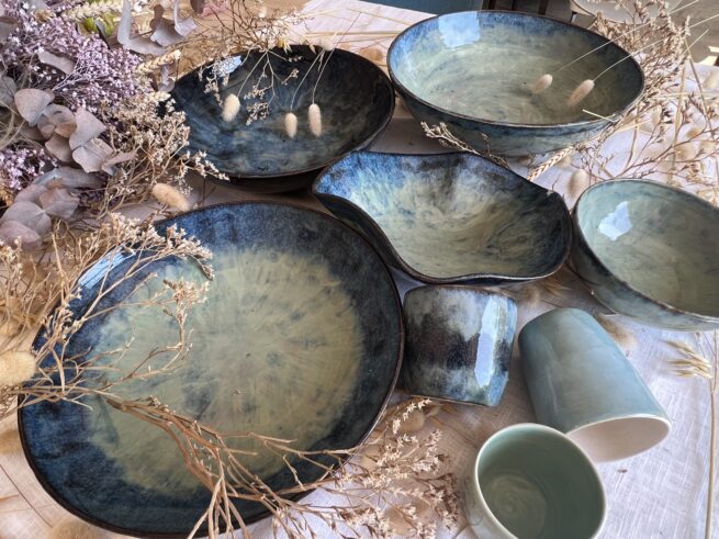 bols bleus en grès